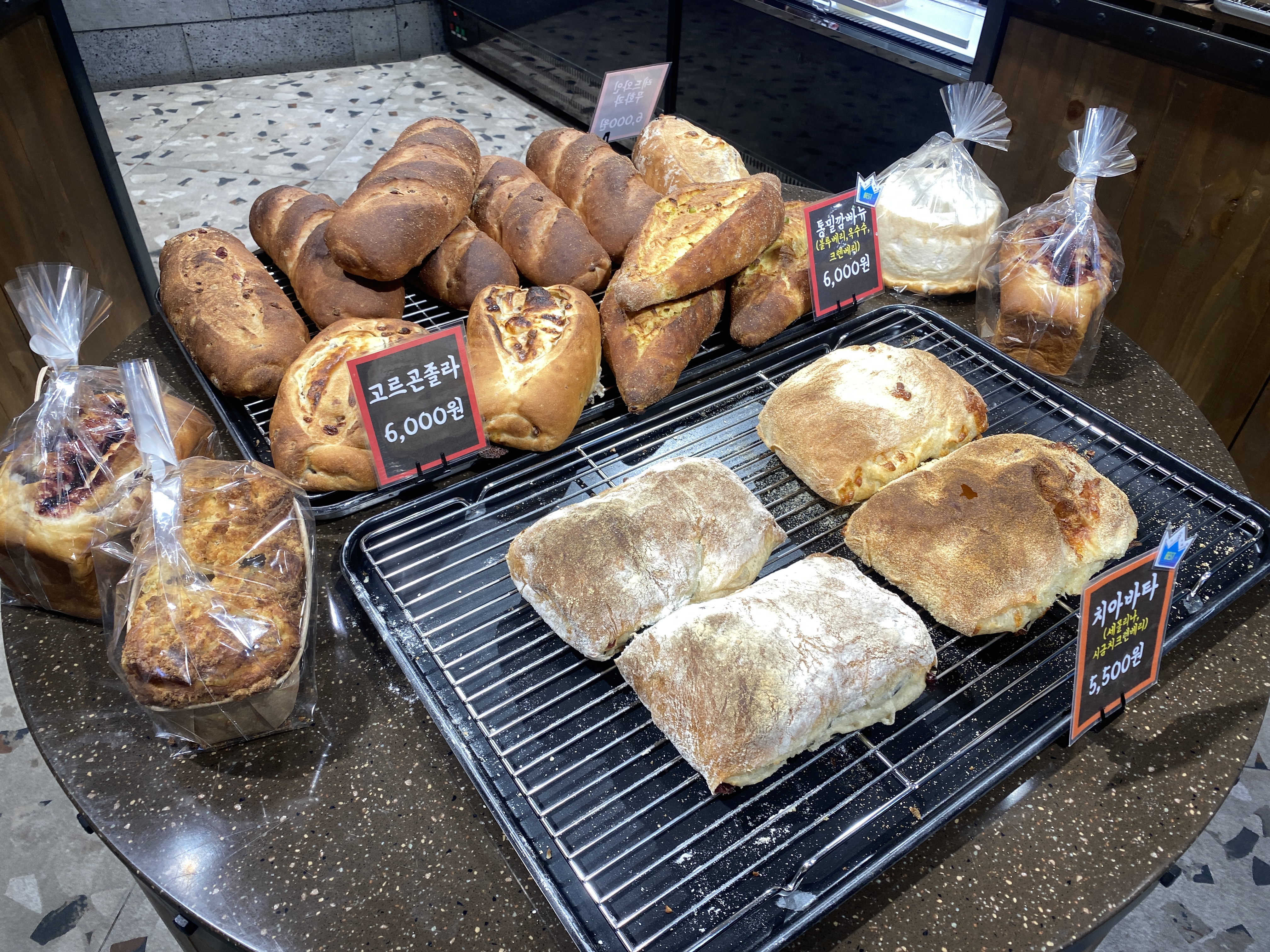 미리 주문했던 회를 픽업하고, 빵 구경 후 구매하느라 그리 오랜시간이 걸리지 않았고, 천원 정도의 비용을 지불했던 것 같습니다!!